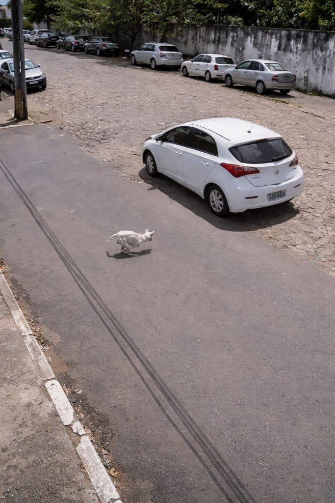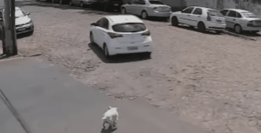 The video began with a moment that was difficult to watch. A security camera captured a woman stopping her car on a quiet street, opening the door, and leaving a dog behind. Tintin, unable to use his front legs, fell forward onto the pavement. Still, he tried. Using what little strength he had, he pushed himself after the car as it pulled away, his body dragging across the road. Within seconds, the vehicle was gone—and Tintin was alone.