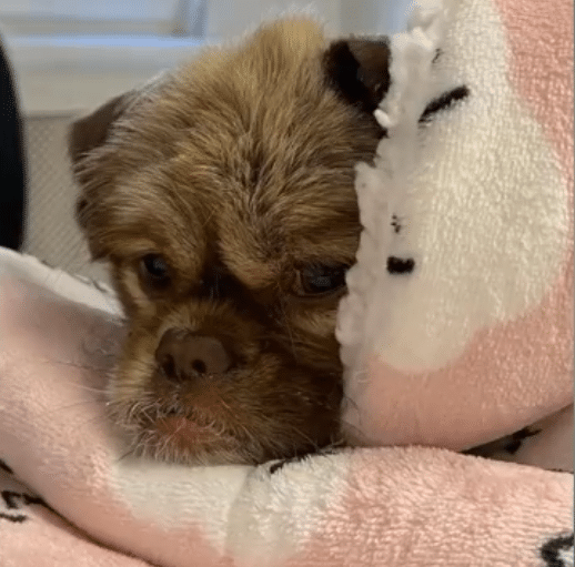 Fedor’s story began on a bitterly cold day, when he was found alone by the side of the road. His small body was thin and weak, barely able to withstand the freezing air. Not far away sat an old cardboard box with a worn towel inside—perhaps meant as shelter, but offering little protection against the cold. Fedor lay quietly, as if conserving every bit of strength he had left.