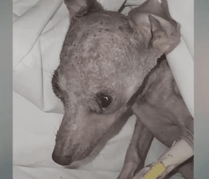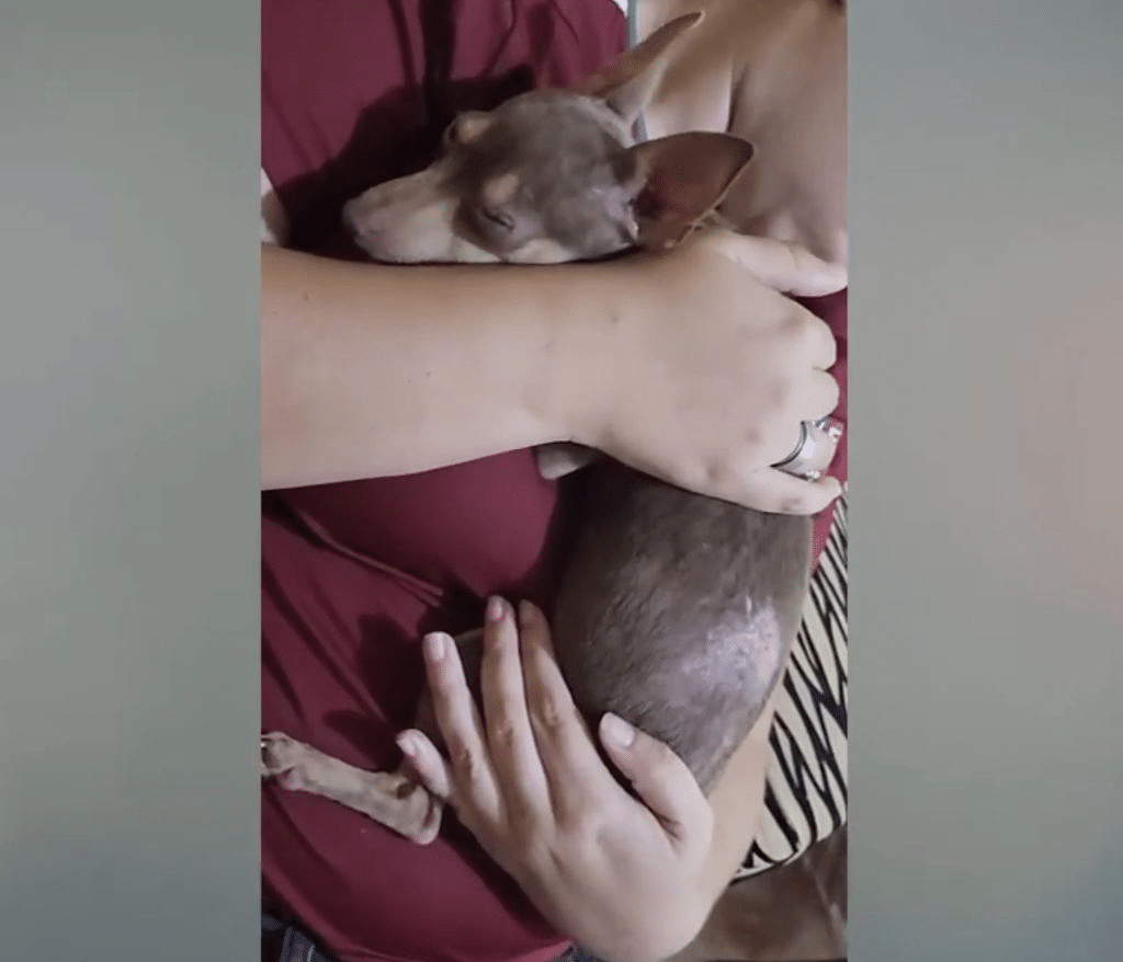 From that point on, progress came slowly but steadily. Her shaking eased. Her breathing calmed. The irritation on her skin began to fade. Soft patches of fur appeared where there had once been bare, inflamed skin. As her body healed, her spirit emerged. She began to follow movement with curious eyes, lean into gentle touch, and one day—offer a small, uncertain tail wag. Safety was becoming real.