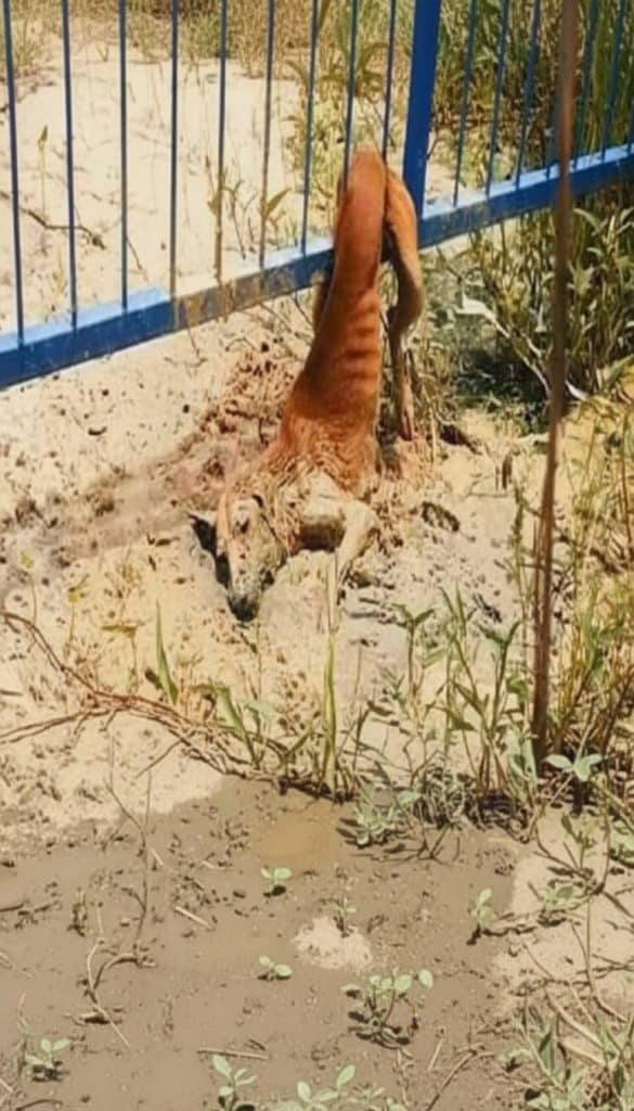While wandering in search of food or shelter, she squeezed through a narrow opening in a fence. At first, it must have seemed like a refuge. But the space was tighter than she realized. When she tried to pull back, panic set in. The more she struggled, the more firmly she became trapped.