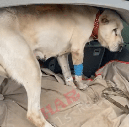 There was no dramatic reaction when Snow was approached. No barking. No attempt to flee. She simply remained still, as though all her energy had already been spent. Gently, she was lifted into a car and taken toward help. The ride was quiet. Snow barely moved, but she allowed it—placing her trust in the hands that had chosen not to look away.