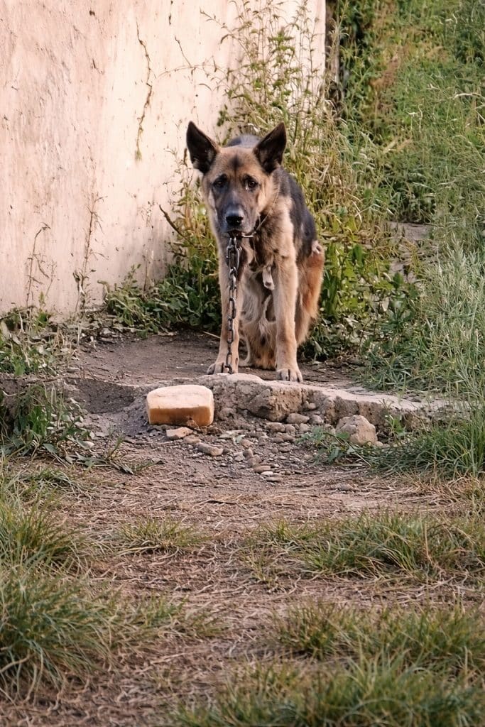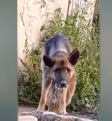 After his retirement, Chuck was handed over to a new owner—someone who failed to understand what it meant to care for a dog who had already given so much. Instead of rest and gratitude, Chuck’s days became painfully small. He was chained outdoors, day after day, year after year. Movement was limited. Food was scarce. Time passed slowly.
