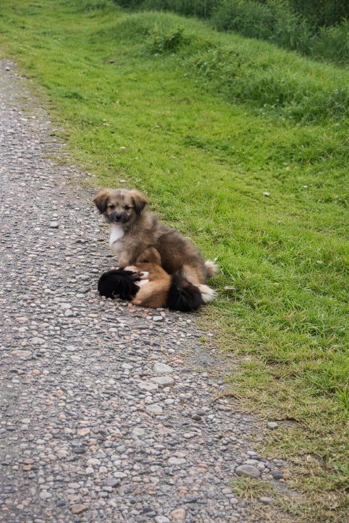 The road was quiet, the air heavy with heat. Inside a worn cardboard box left along the roadside, a mother dog lay curled tightly around her puppies. The temperature had climbed to nearly 33°C, and the sun showed no mercy. There was no shade. No water. No sign that anyone planned to return.