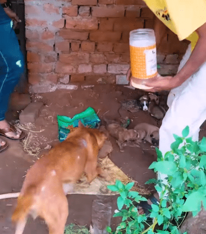 The rescue team remained nearby, ensuring the family had food, shelter, and continued support. The puppies fed, the mother rested, and the small survivor settled into the warmth he had almost lost.