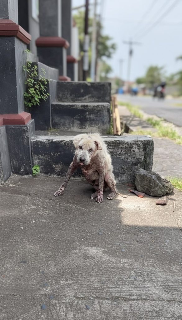 Ossie’s condition didn’t develop overnight. His rough coat, thin frame, and inflamed skin reflected weeks—possibly months—of being overlooked. Though he walked beside a human, he had been carrying his suffering alone.