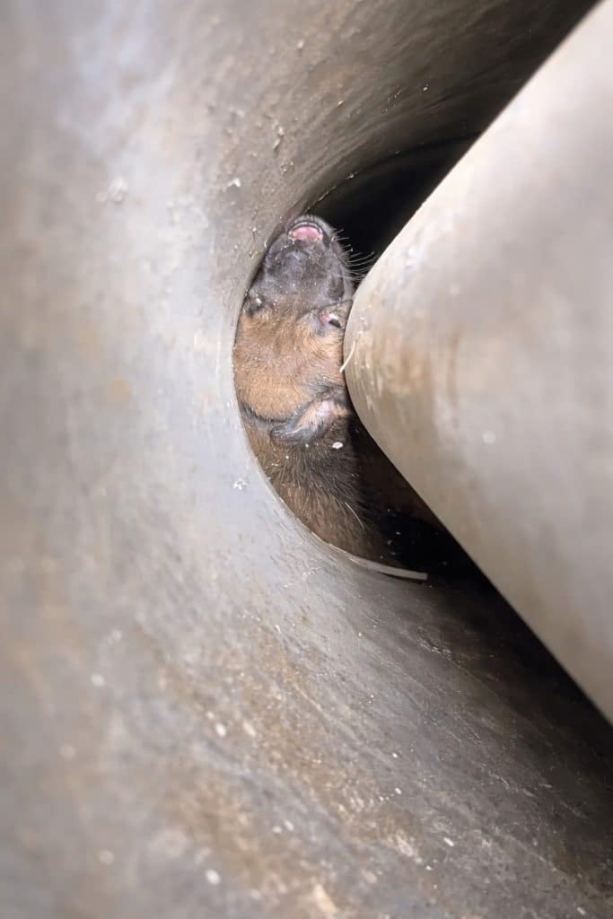 Local residents quickly contacted the rescue team from Animal Warriors Conservation Society. Flashlights were lowered into the pipe, revealing the small, muddy bodies far below. The puppies were alive, but frightened and unable to move. Everyone understood the danger. The space was tight. The air was limited. Time mattered.