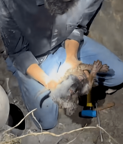 Once close enough, a handheld cutting tool was used to open a small section of the plastic pipe. One by one, the puppies were gently guided out through the opening. Covered in mud and trembling, they were lifted into daylight — alive. Each rescue brought gasps, relief, and quiet cheers from those watching.