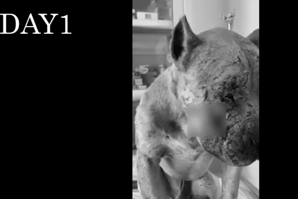 In the days that followed, progress came slowly but steadily. Nutritious meals were introduced with care. Her strength began to return. She lifted her head when people entered the room. One afternoon, her tail moved—just slightly—but enough to make everyone pause. Trust was finding its way back.