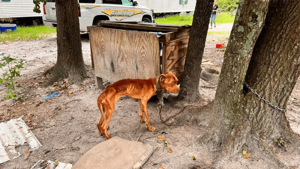 When rescuers first met the dog who would later be named Justice, they instantly knew they had arrived at a critical moment in his life. He stood quietly on an abandoned property, a place long forgotten and stripped of any signs of care. There were no food bowls, no shelter, no indication that anyone had checked on him in years. What struck the team most was not just his thin frame, but the quiet exhaustion in his eyes—like a dog who had spent far too long surviving on hope alone.