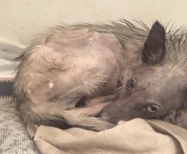 At the clinic, the veterinary team acted quickly. The puppy—later named Fighter—was in critical condition. Severe malnutrition had weakened his body, and infection had taken hold. Tests revealed extreme anemia, a dangerous bacterial infection, and advanced demodectic mange. His small body was fighting more battles than it should have ever known.