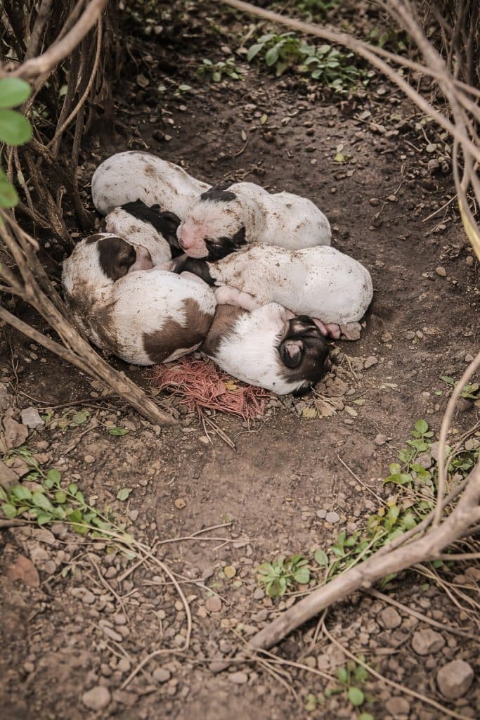 In a quiet patch of overgrown bushes, residents discovered a litter of puppies tucked away from the world. Kind neighbors left food nearby, hoping to help. But the mother dog never approached while people were present. Fear kept her at a distance. She waited until the area was empty before quietly returning to care for her babies.