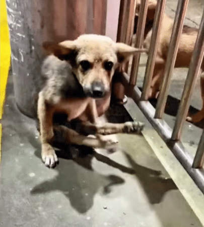 On the day the storm clouds began to gather, a rescuer noticed a small stray dog curled tightly beside a roadside utility pole. His back legs lay motionless beneath him, and the wind pushed harder with every passing minute. Yet what stopped the rescuer wasn’t the weather—it was the dog’s eyes. Quiet, alert, and full of hope. Leaving was never an option.