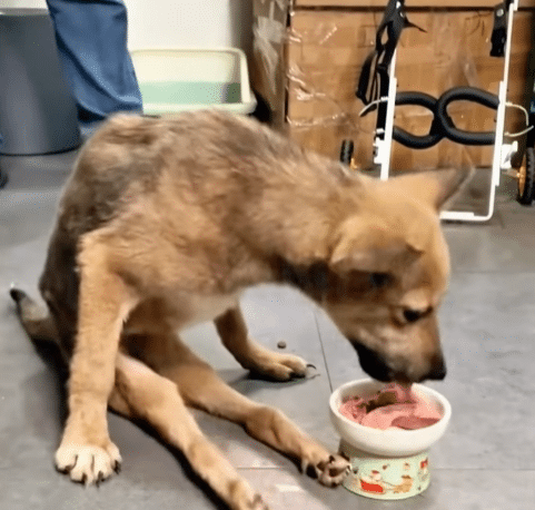 On the ninth day, the dog—now named Fu Bao—was examined by specialists. X-rays revealed an old fracture in his lower spine that had healed improperly. Surgery was not possible. Fu Bao would never regain use of his back legs and would live with permanent paralysis and incontinence. The diagnosis was final, but it was not the end.