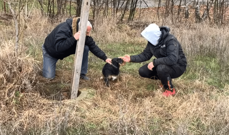 His search ended when he heard something unexpected — faint cries echoing from the ground. In the middle of an open field, Ivan traced the sound to a deep, uncovered manhole. Looking down, he realized the missing dog had fallen inside and was trapped far below, alone and frightened.