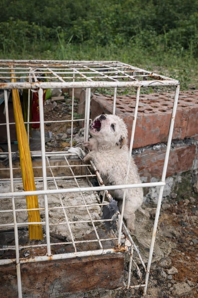 Near a drainage ditch lay a third puppy. Small, white, filthy, and trembling, he was barely visible against the wet concrete. Unlike the others, he was still alive. Ami did not hesitate. She wrapped the puppy in her jacket and took him home, unaware that this fragile life would soon change her world. She named him Little Dot, a reminder of how close he had come to disappearing.
