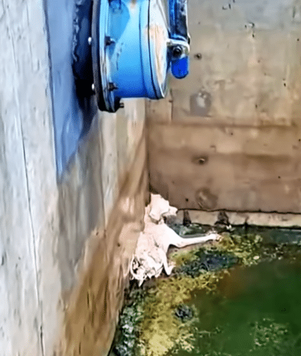 The video opens on a moment that feels almost impossible to watch. Deep inside a narrow, muddy drainage pipe, a tiny puppy lies curled against the damp concrete. The water around him is cold and murky, his small body trembling as exhaustion takes over. He is too weak to cry out, too small to climb, and far too fragile to survive much longer on his own.