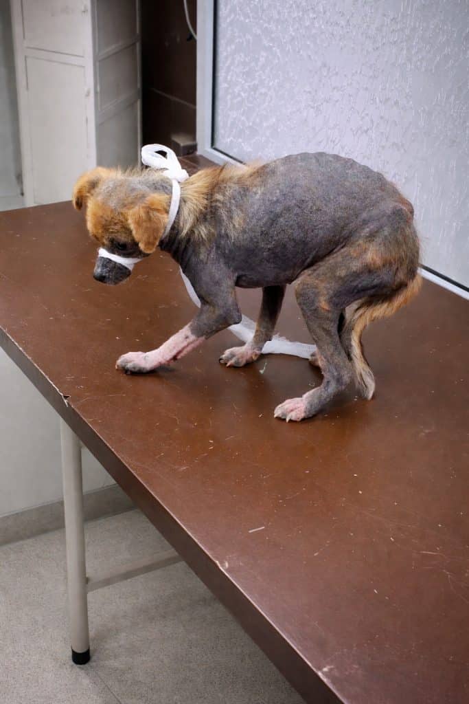 Dotty’s story began in silence. In a public park in Bulgaria, she wandered alone, barely recognizable as a dog. Severe mange had taken almost all her fur, leaving her skin exposed and sore. Her body was small, but her reactions were fierce. Anyone who came too close was met with growling and snapping — not out of aggression, but fear. To those who saw her from a distance, she looked more like a frightened wild animal than a companion in need of help.