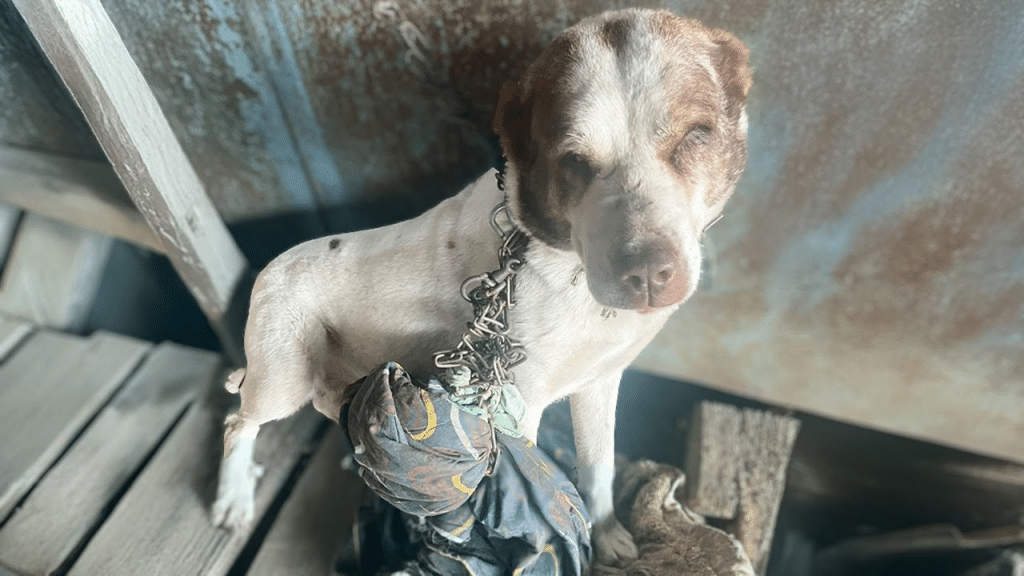 Shanya’s story begins in a quiet corner of a yard that most people walked by without a second thought. When rescuers eventually found her, it was hard to grasp how long she had lived in that small patch of ground, cut off from the world around her. She was petite, cautious, and heartbreakingly thin. For nearly five years, she had known only stillness and silence. No soft bed, no warm greeting, no chance to explore beyond the limits of a short chain.