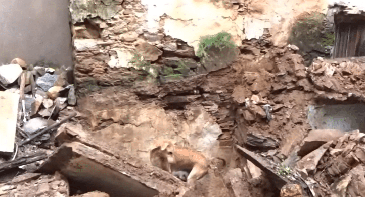 When rescuers arrived, they immediately sensed something was wrong. The mother dog stood at the edge of the rubble, barking repeatedly and pacing back and forth. She wasn’t panicked or aggressive. Instead, she kept turning toward the debris, making it clear that something precious was trapped beneath the shattered bricks and concrete.