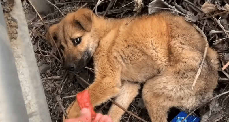 During a motorcycle journey through a remote mountain road, the rescue team noticed a small puppy wandering alone along the edge of the pavement. He was no more than four months old, painfully thin, covered in dirt, and so weak that his steps were unsteady. Weighing under five kilograms, he looked like a life slowly running out of strength beneath the open sky.