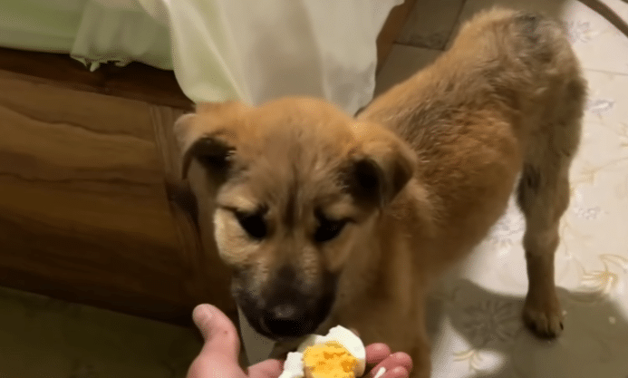 The journey didn’t end at the clinic. The puppy continued traveling with the group, becoming part of their daily rhythm. He was fed five small meals a day—meat, eggs, milk, and vitamins—carefully spaced to help his body recover. Over the next three weeks, the change was unmistakable. His wounds healed. The fever disappeared. His weight climbed to 7.2 kilograms. More importantly, his spirit returned.