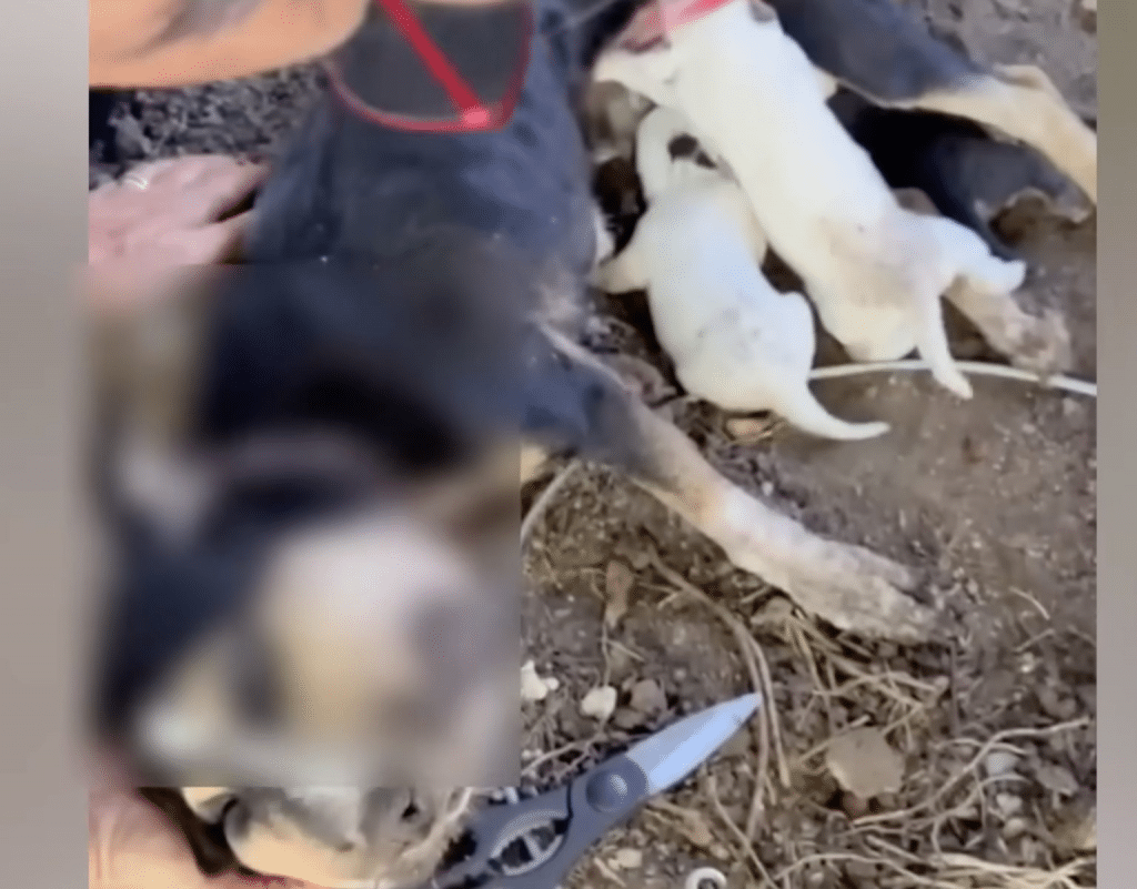 The marks on her neck showed that she had likely been confined for quite some time. Harsh weather had passed over her—cold nights, hot days—yet she had remained by her puppies’ side, doing everything she could to keep them safe. Her strength wasn’t loud or dramatic; it was quiet, steady, and full of love.