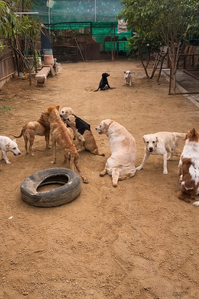 Across the yard, dozens of dogs gather. They vary in size, color, and age, yet most share the same condition—paralyzed hind legs. To move, they rely on strong front paws, pulling their bodies forward with practiced ease. What might look like limitation quickly fades when you notice their energy. They move with confidence, purpose, and unmistakable joy.