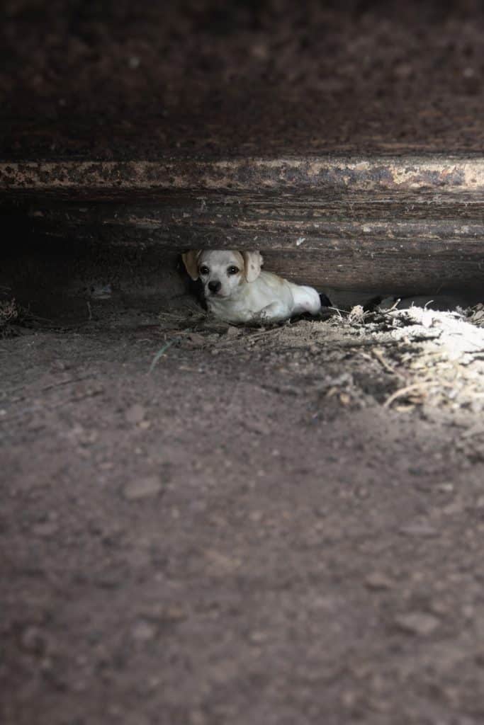 The space beneath the container was tight and dark. The puppies were pressed deep inside, and the mother stayed close, alert and watchful. Eldad and Loreta realized quickly that they didn’t have the proper equipment to safely bring everyone out.