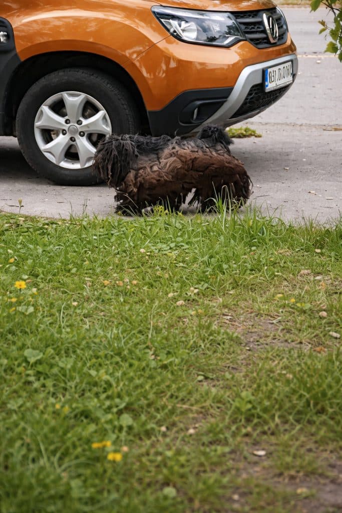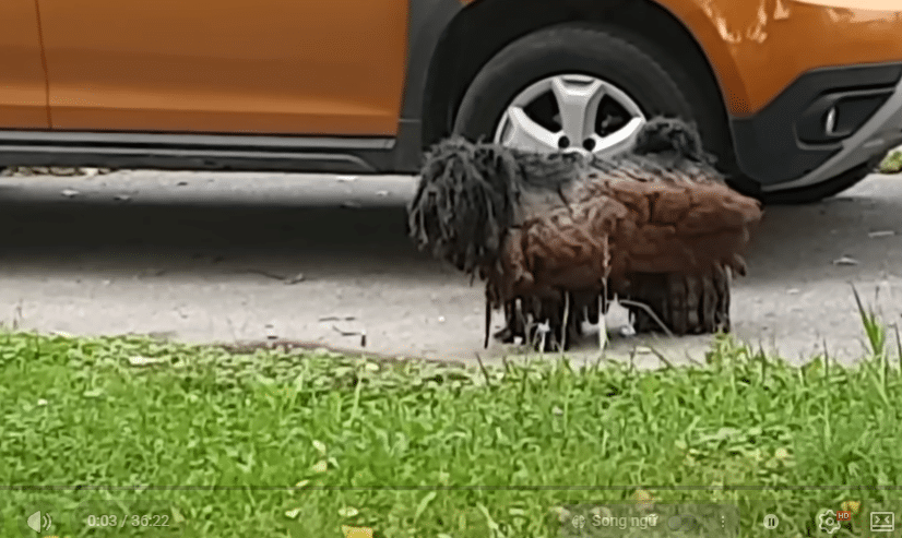 His body appeared misshapen, wrapped in thick, rope-like mats of filthy fur that dragged close to the ground. Each step looked heavy, as if he were carrying a burden far larger than himself. From a distance, he didn’t look aggressive or loud—just tired. A dog who had been surviving on his own for far too long.