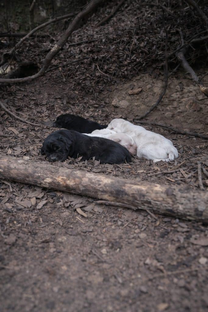 Somewhere nearby, puppies had already been born. And if they were still alive, they were dangerously close to the highway, hidden on a steep hillside with no protection.
