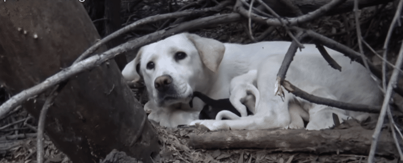 Almost instantly, the mother dog responded. Her ears lifted. Her body tensed. She moved toward a patch of brush she had been guarding all along.
