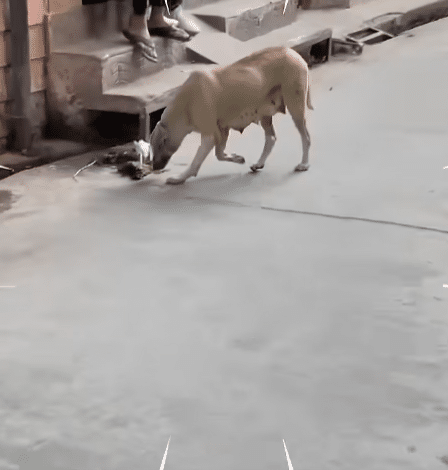 Early one morning, a rescuer stepped outside his home and noticed a female dog wandering the street nearby. At first glance, she didn’t look aggressive or panicked—just exhausted. Then he realized why.