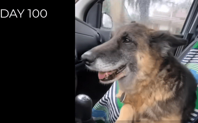Her coat grew back thick and soft. Her body grew strong. She rode calmly in the car, leaned into hugs, and explored the world with growing confidence.