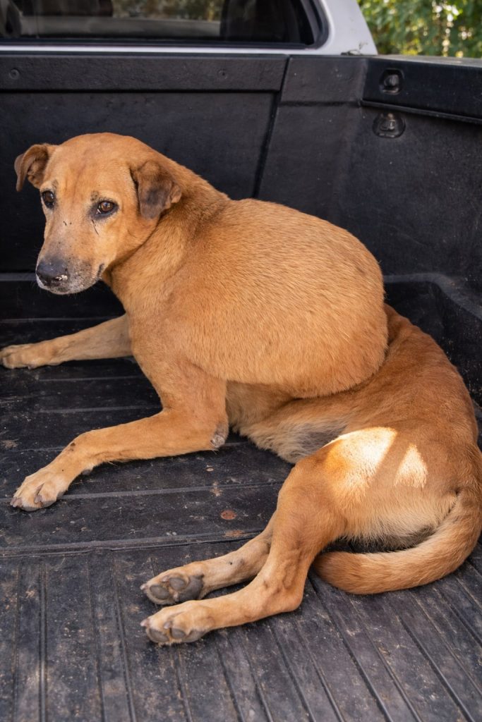 He was painfully thin. His ribs showed beneath a coat dulled by dirt and neglect. Each breath seemed measured, careful, as though even breathing demanded effort. This was not a life—this was survival.