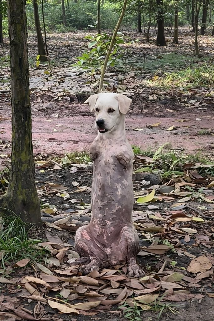 He was first seen near a busy construction site, where heavy machinery moved without pause and noise filled the air. Small and alone, Pip stood at the edge of it all, balancing carefully on his hind legs. He was missing both of his front legs — how it happened was never fully known — but the signs told a story of survival under impossible conditions.