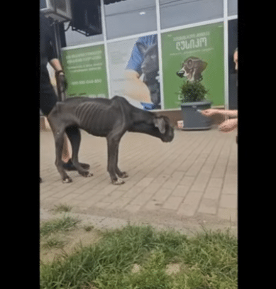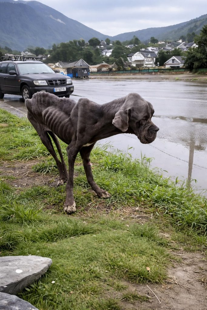 Odji was a Great Dane—normally a breed known for strength and presence. But hunger and neglect had stripped her down to something fragile. Her ribs pressed sharply against dull, tangled fur. Her body looked impossibly thin for her size.