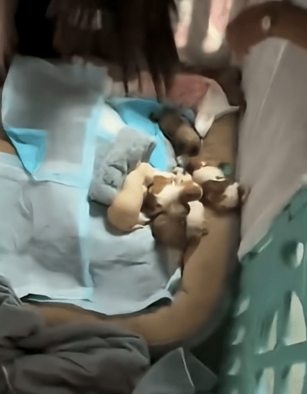 Because the puppies were far too young to eat on their own, rescuers fed them milk using special tools designed for newborns. Each feeding was slow and careful. Drop by drop, warm milk helped restore their strength.