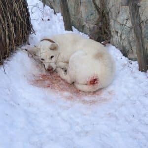 The video opens in silence. Against a backdrop of frozen ground and biting wind, a large white dog lies curled tightly into himself. Snow presses against his…