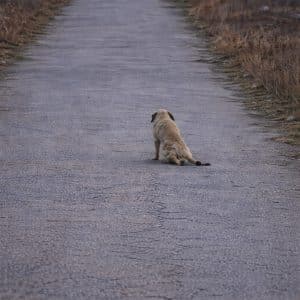 At first glance, he looked like a shadow on the dirt road. A black dog lying still, barely lifting his head as cars passed in the distance….