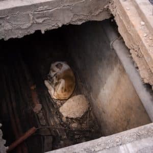 It began with a glimpse of movement beneath the edge of a street. A dog had slipped into a narrow electrical drainage trench — the kind built…
