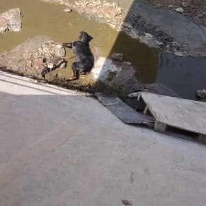 It happened at a construction site — a place of noise, dust, and heavy materials.Somehow, a small black puppy slipped and fell into a pit of sticky…