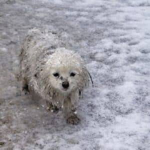 Snow has a way of making everything look quiet. But that morning, the silence was broken by the sight of a small white dog running across a…