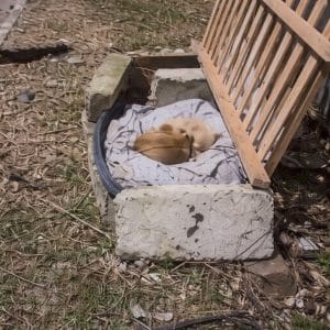 When the family moved away, they didn’t take everything with them. Behind the house, on a stack of old wooden planks, a mother dog and her tiny…