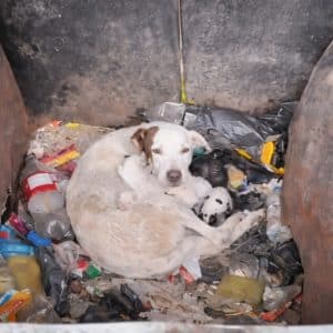 The first images were difficult to forget. A thin mother dog lay curled inside a mound of discarded waste, her body shielding three newborn puppies from the…