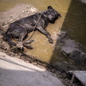 For a long time, this dog’s life had grown painfully small. His days passed in the same place, tethered to a wall, surrounded by silence and uncertainty….