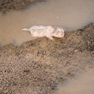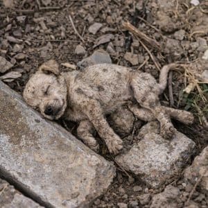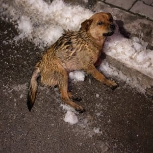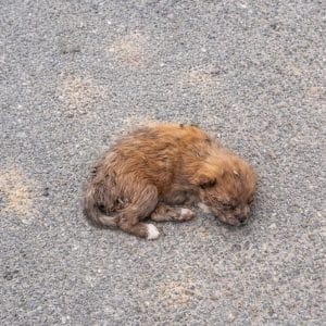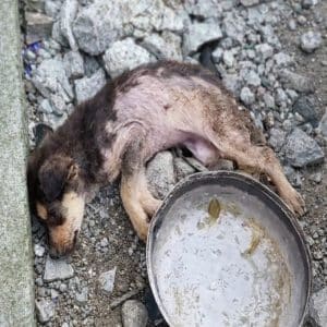 Most people noticed him only for a second. A small puppy lay near the edge of the street, too weak to move away, too tired to react….