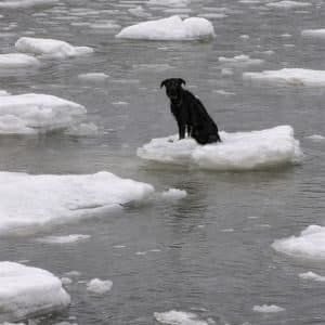 In the middle of a frozen sea, far from shore, a black dog stood motionless on a small drifting ice floe. The water around him was dark…