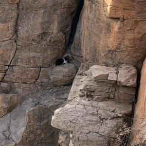 From a distance, he looked like a shadow.A small black-and-white dog, barely moving, stranded on a thin rocky ledge halfway up a steep cliff. There was no…