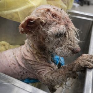 Found beneath the harsh sun of neglect, Valentine, a tiny dog with a fragile frame, was fighting for every breath. His body trembled uncontrollably, his ears bore…