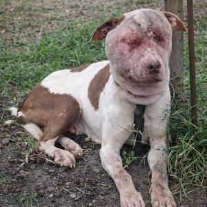 On a quiet street in St. Simo, Rio de Janeiro, a small, fragile dog wandered alone, barely able to lift her head. Her face was painfully swollen,…